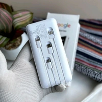 10000mAh Powerbank With 4 Build In Cables | Lithium Polymer Power Bank | Plastic Casing, Lightweight | Extra Ports | For Mobile, Earbuds, Smartwatch, Speaker, Tablet