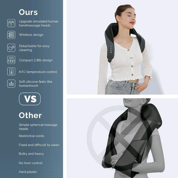 - Utility effect - This neck massager can provide a comfortable massage for people of different ages and fatigue levels. Infrared heating increases mild warmth, soothes muscle soreness, effectively improves blood circulation, relieves all aches and fatigue.