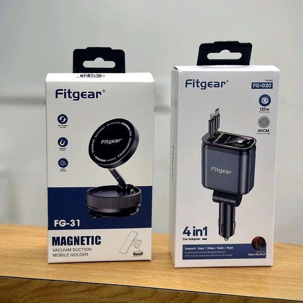Fitgear Car Essentials Combo | Magnetic Phone Holder + 4-in-1 Fast Car Charger | Complete Driving Setup