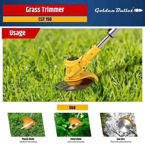Golden Bullet CGT-150 Cordless Grass Trimmer | Heavy-Duty Weed Cutter | Multi-Blade Garden Trimmer Machine | Dual Battery