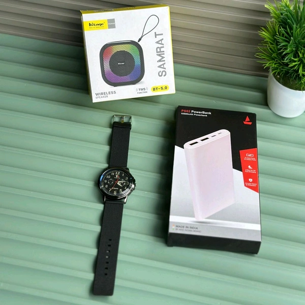 Most Awaited Combo, Hitage Bluetooth Speaker, Portable Power Bank And Analog Quartz Watch
