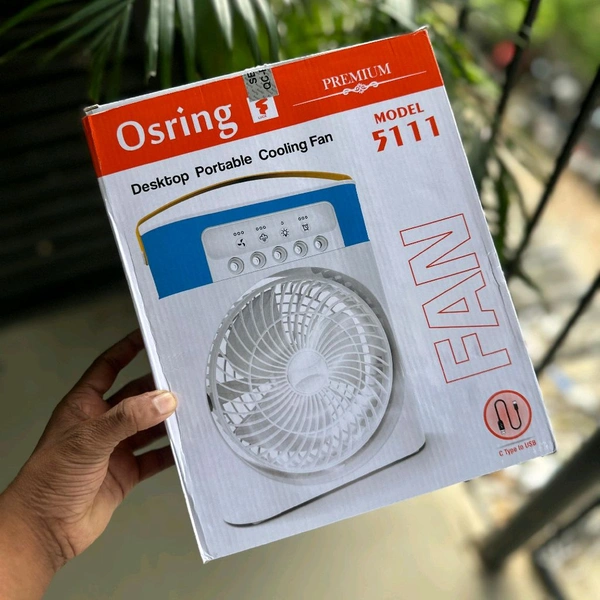 A compact portable cooling fan with mist spray designed for personal use in hot weather. Suitable for desks, bedrooms, study tables, or small rooms where you need quick cooling.