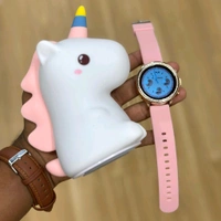Smartwatch and Rainbow Unicorn Night Light Combo Set | Elegant Smart Watch with Pink Strap & Metal Chain + Soft Silicone Unicorn LED Night Lamp for Kids & Gifts