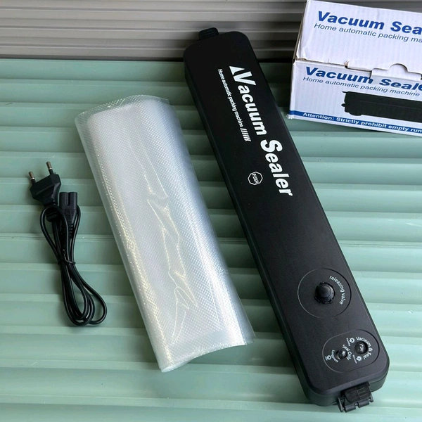 Multipurpose Vacuum Sealer : This Vacuum Sealing Machine is designed to remove air from specially designed bags by heat sealing to enhance the shelf life of food articles, prevent freezer burn, and reduce food waste in your kitchen.