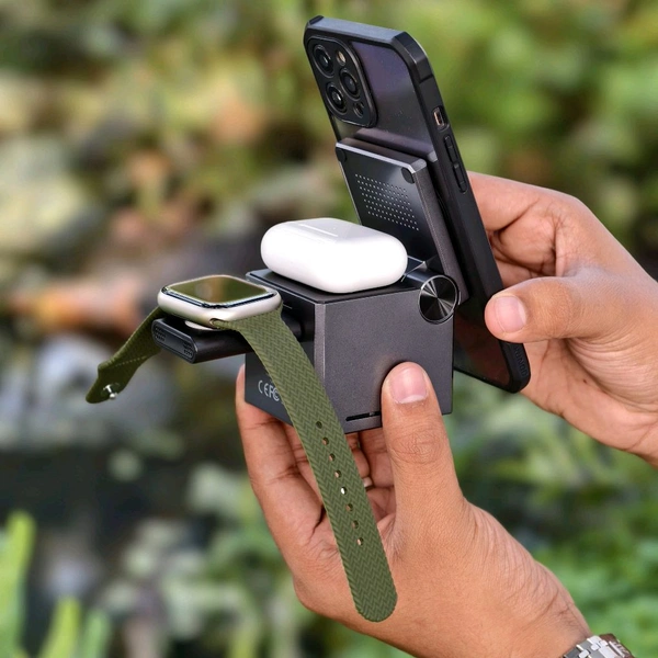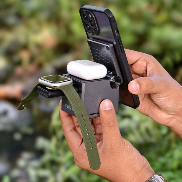 3-in-1 Functionality: Charges your iPhone, Apple Watch (1-8/Ultra), and AirPods Pro simultaneously.